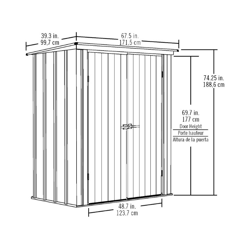 Les doubles portes en acier maximisent la capacité de passage de l'abri AM1709GC, pour vous permettre d'utiliser au mieux la surface de stockage en rangeant de larges pièces.