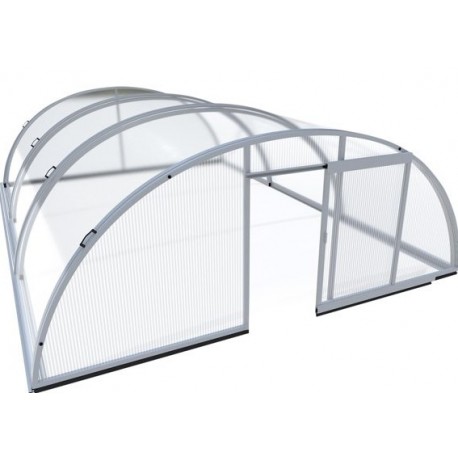 L'entretien est facile, car cet abri de piscine est composé de matériaux parfaitement adaptés à l’extérieur et qui ne craignent ni les intempéries, ni la rouille. Il associe en effet une structure en aluminium anodisé à des parois constituées de panneaux de polycarbonate anti-UV de 10 mm d’épaisseur. Cet Abri de piscine à des pignons avant et arrière amovibles et mobilise une porte coulissante située en façade afin de faciliter l’accès au bassin.