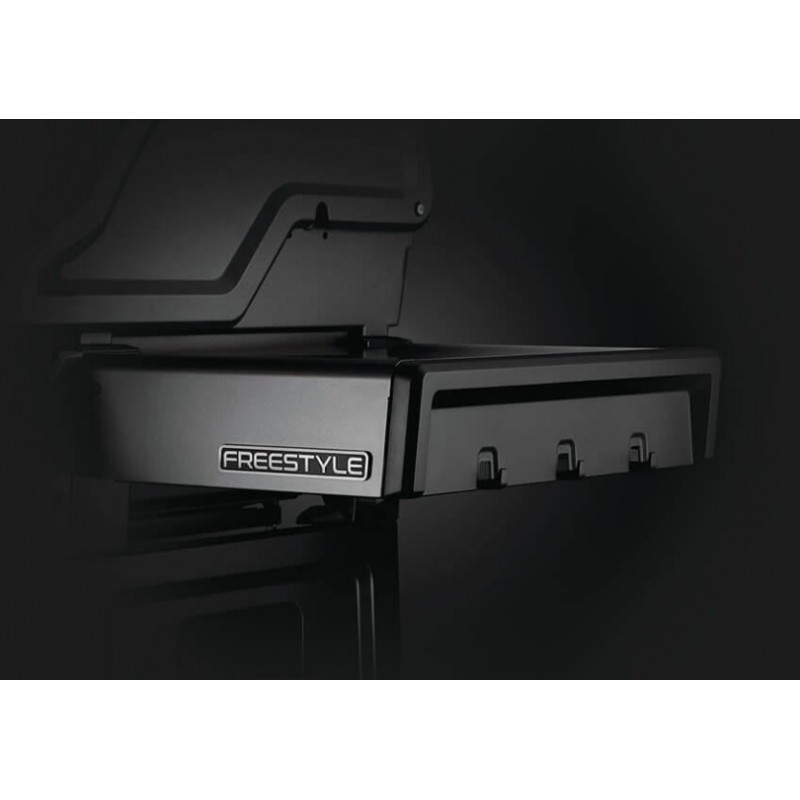 Les roues robustes de ce barbecue lui permettent d'aller où on en a besoin, avec des tablettes latérales pliables, des crochets à ustensiles et un décapsuleur, permettant au Freestyle de s'adapter à votre espace et à votre style de vie.