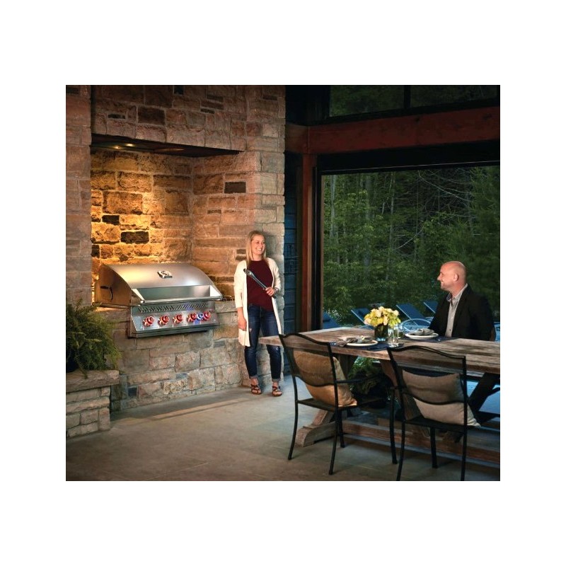 Le barbecue encastré en inox Napoléon fonctionne au gaz de BIG 38 de la série encastrée 700 avec brûleur arrière infrarouge s’intègre facilement et harmonieusement à votre cuisine extérieure.
