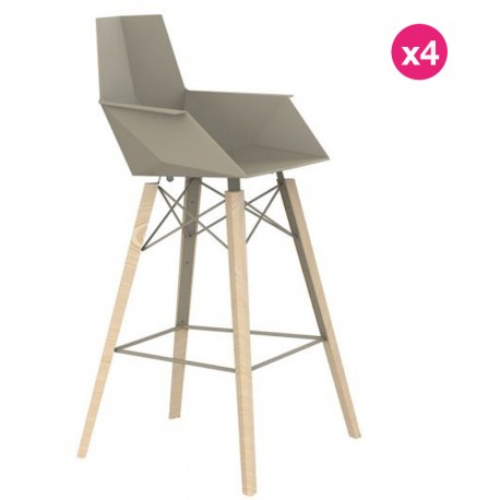 Lot de 4 Tabourets de bar Vondom Faz Wood1 écru avec pieds chêne blanchis et accoudoirs.