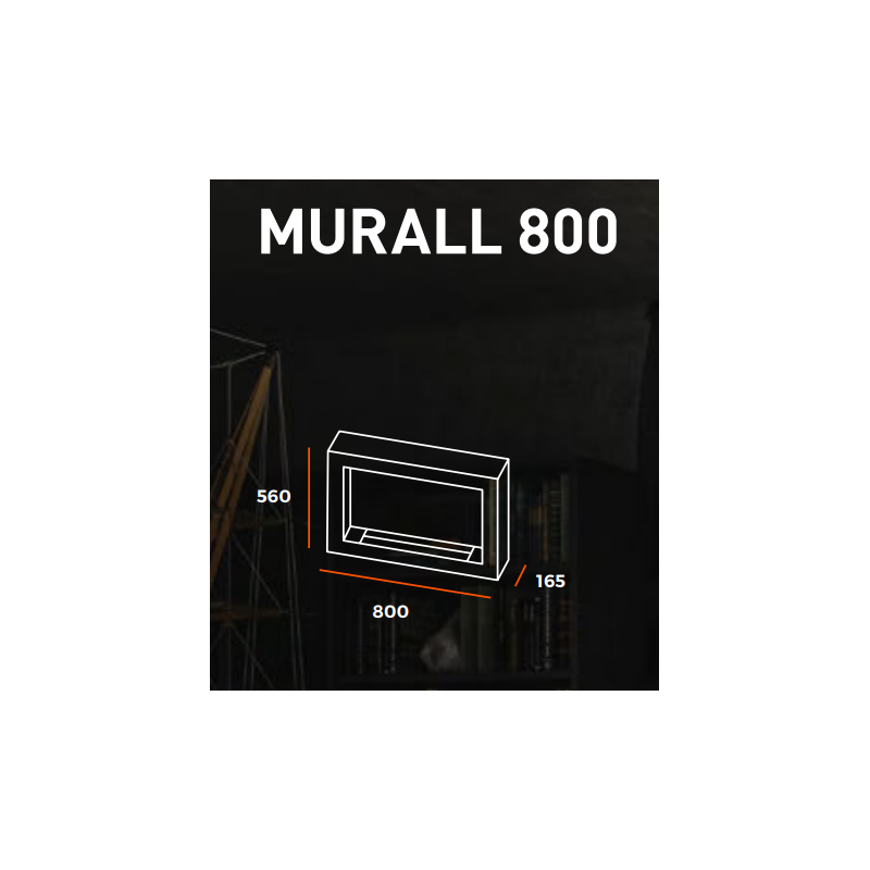La Cheminée au bioéthanol Murall 800, sans conduit avec 1 vitre, s'installe suspendue au mur.