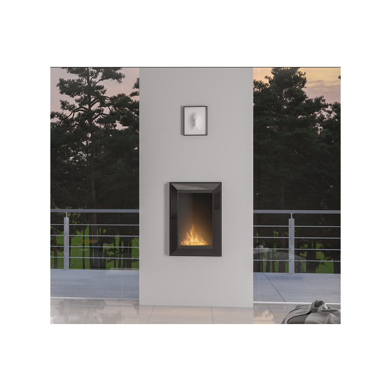 Le feu procure un effet visuel extraordinaire, qui grâce à sa forme géométrique s'installe dans tous les intérieurs avec son système de suspension mural.