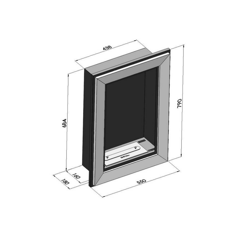 Cheminée bioéthanol Frame: Brûleur Inox avec réservoir 0.7 litre.