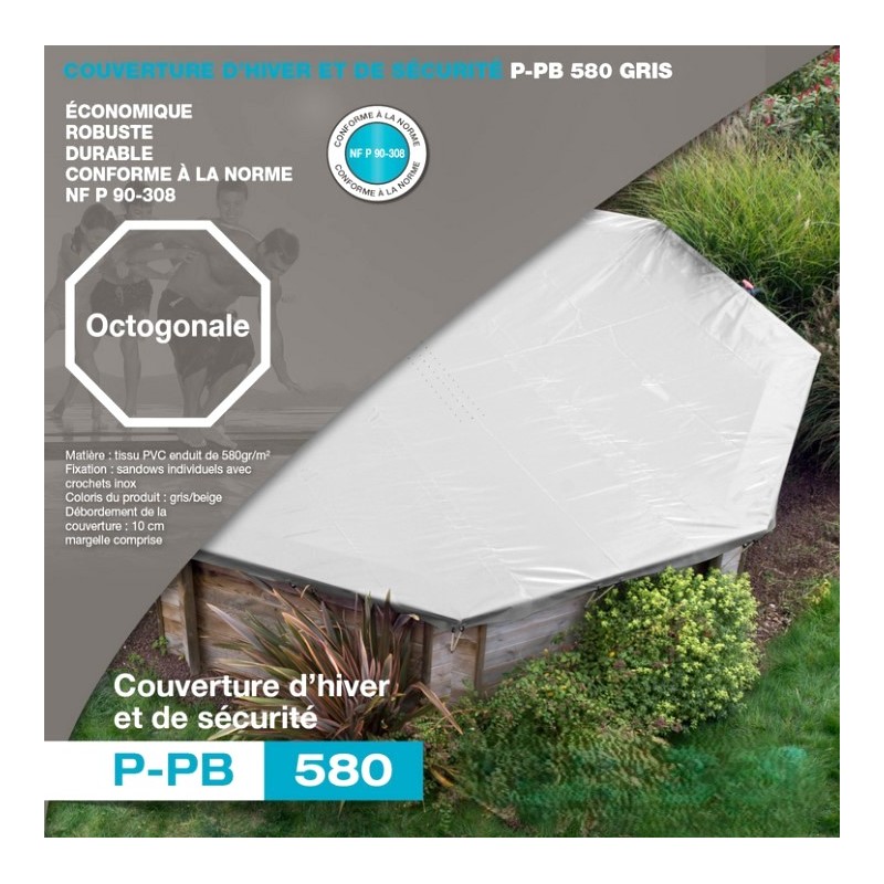 Couverture d’hiver piscines bois octogonales 530 gris P-PB 580.
