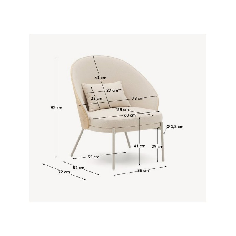 - Fauteuil avec dossier en placage de frêne finition naturelle.