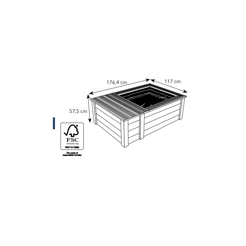 - kit en bois sapin du Nord (épaisseur des planches :28 mm) traité autoclave class IV certifié FSC® à margelles rainurées.