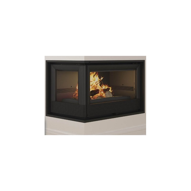 Insert à bois d'Angle vitrés gauche Bronpi Paris 90-EI Vision 14kW avec turbine.