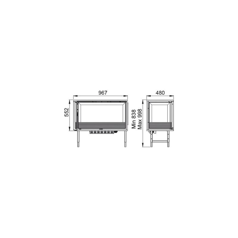Volume chauffé :350m3- Rendement 77% - Porte et grille de cendrier en fonte - Foyer en fonte - Double combustion et Système verre Propre - 2 sorties d'air chaud canalisables. Vitre vitrocéramique résistant à 750 °C en Angle Gauche.