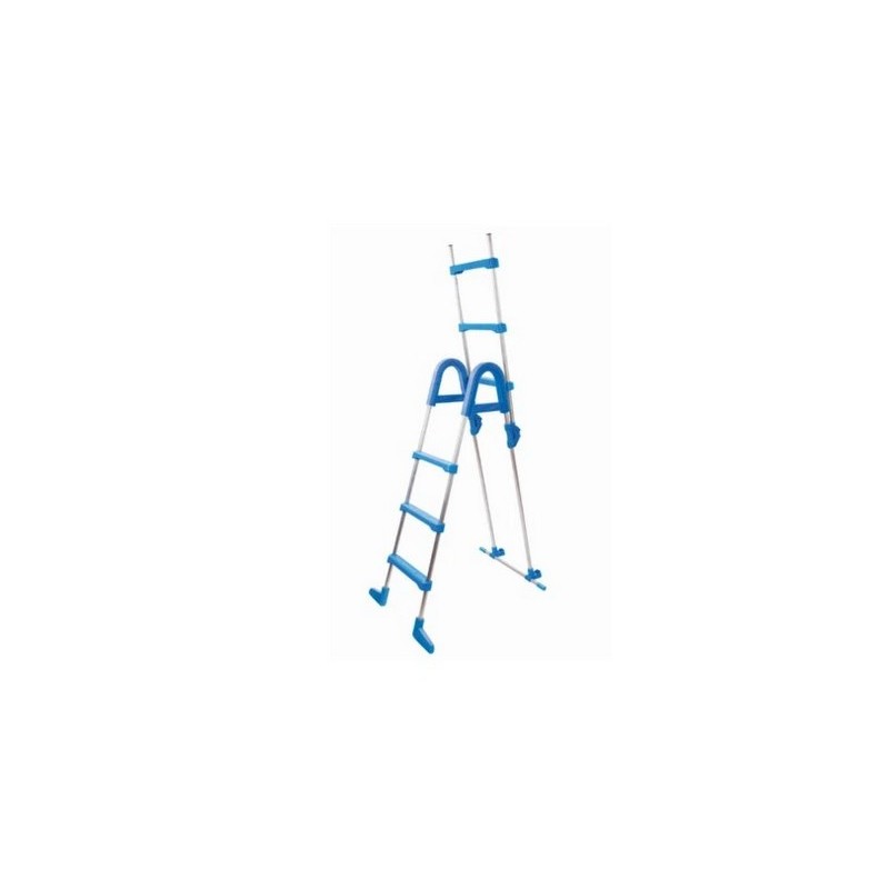 Échelle : Échelle de sécurité. Elle est en acier galvanisé blanc avec 3 marches et avant amovible. (Cela permet de démonter les marches du côté extérieur afin d’empêcher les enfants d’accéder à la piscine et d’éviter les accidents).
