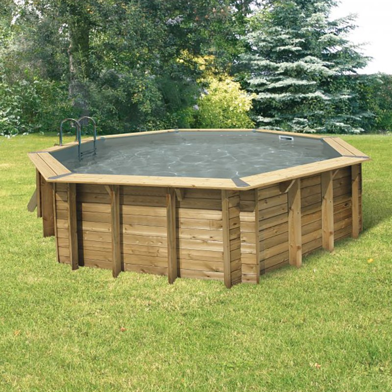 Piscine en bois Ubbink Océa 580 de forme octogonale ronde. Livrée en kit complet comprenant la structure, la filtration et les accessoires.