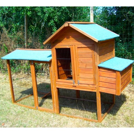 Le charmant poulailler bi-corps en bois teinté offre tout le confort nécessaire pour 5 ou 8 poules.