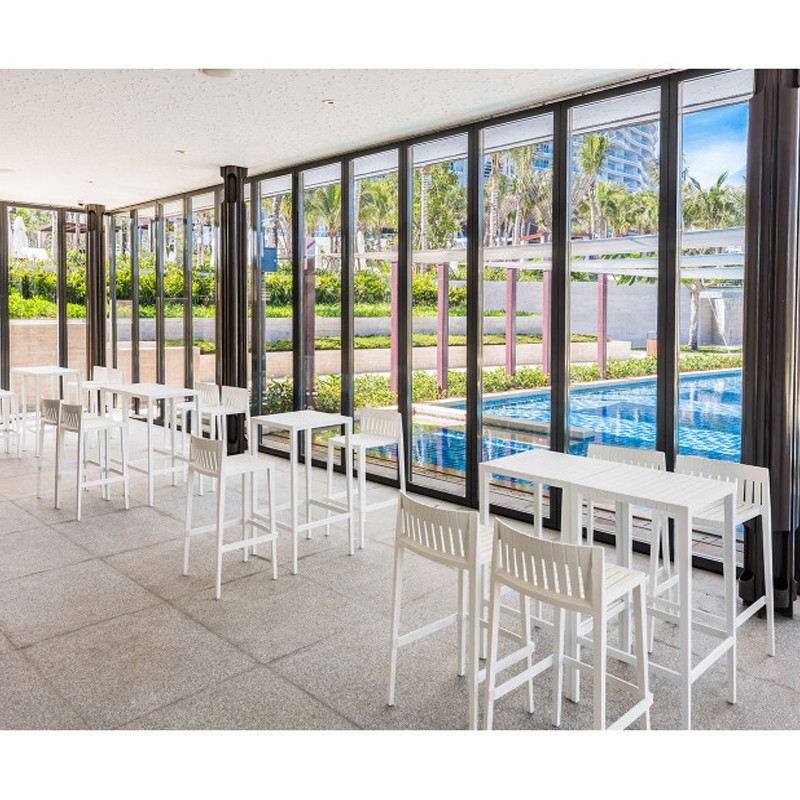 Côté pratique, les éléments du set Spritz table et deux tabourets sont très robustes, légers et faciles d’entretien. Très maniables, les tabourets sont également empilables, pour une optimisation parfaite de vos espaces.