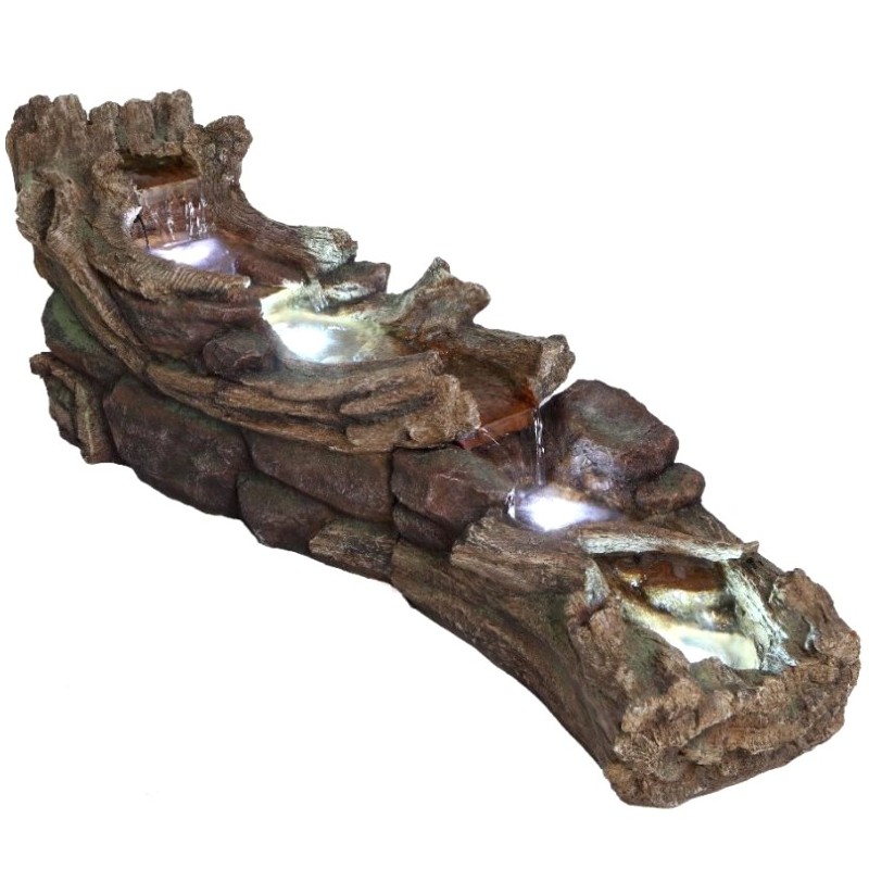 La fontaine Arbia Ubbink ruisseau préfabriqué imitant la forme naturelle d’un vieil arbre. L’eau s'écoule vers le réservoir intégré en plusieurs petites terrasses éclairées par des LED. Complet avec pompe pour le jardin prêt à l’emploi