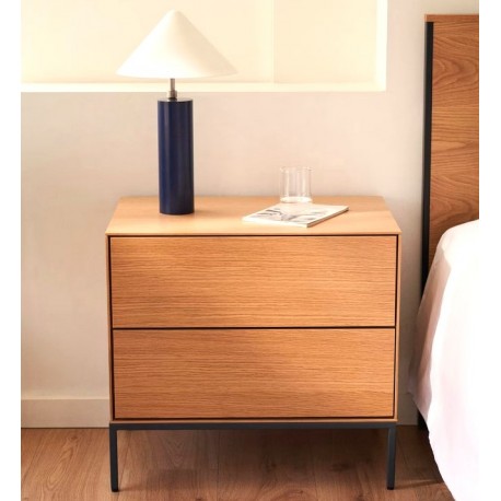 Table de nuit Rana placage bois de chêne avec finition moderne et 2 tiroirs.