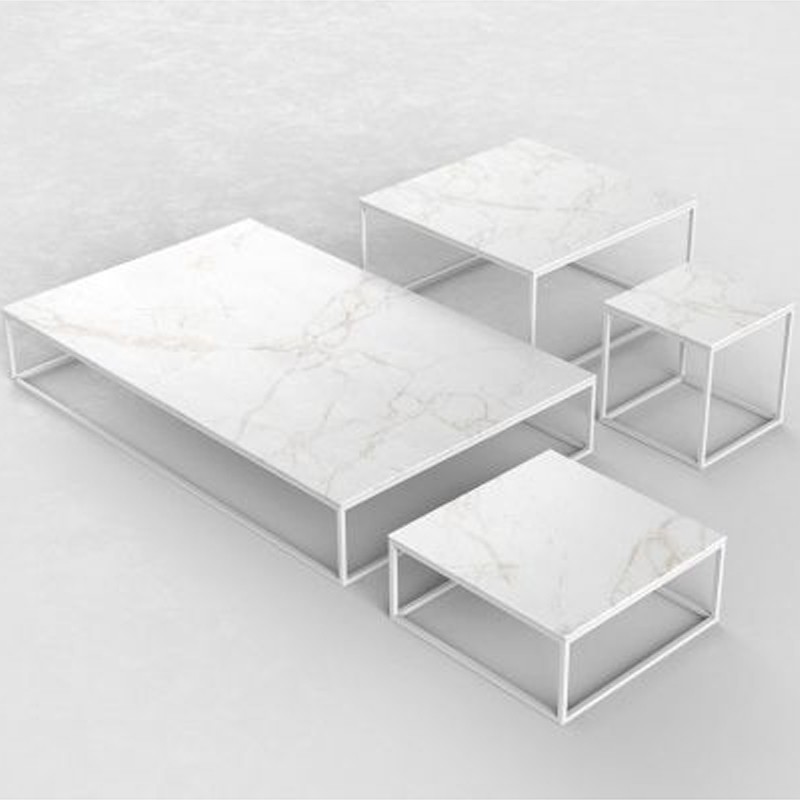 Table basse carrée Suave Vondom Dekton Entzo blanc et pieds blancs 80x80xH40.