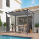 Equipée de sept lambourdes et d'un système de tringle à rails central et latéral, cette pergola vous offrira un espace de détente unique, très confortable, à protection modulable, qui vous tiendra à l'abri du soleil et de la pluie.