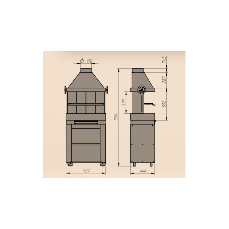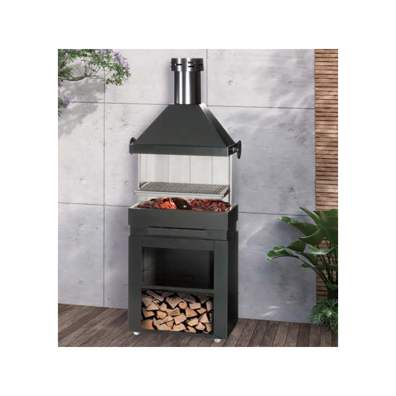 Barbecue Escalor Patio su mobili a rotolamento in mattoni refrattari e acciaio con cappa