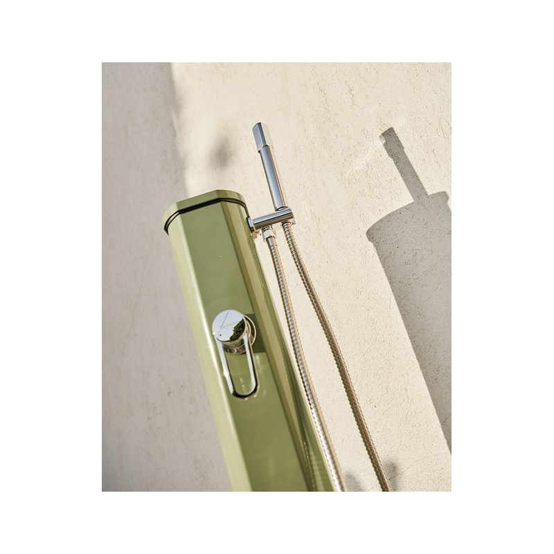 Le Jolly Go 20L Reseda Alluminio Verde delizierà chi desidera una doccia solare discreta senza compromettere la capacità, la praticità e il design.