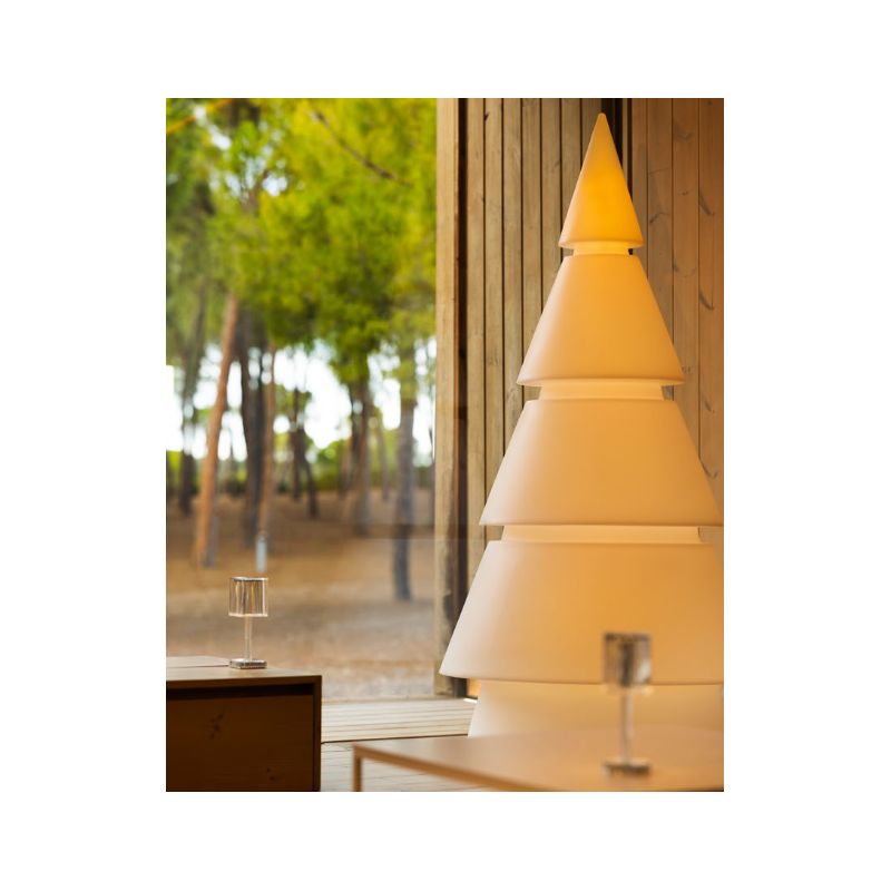 Il designer Ramón Esteve ha progettato l'albero di luce Forest per il marchio Vondom. Attraverso le sue linee pure e geometriche, l'albero della foresta è una riscrittura contemporanea dell'albero di Natale. La sobrietà e l'eleganza del suo design creano un'armonia senza tempo qualunque sia lo stile del vostro ambiente. Dotato di un sistema di illuminazione LED bianco o RGBW LED (variazione del colore della luce grazie al telecomando in dotazione), l'albero Forest genera una luce ambientale morbida e avvolgente. Disponibile in quattro diverse dimensioni, è ideale per un business, un ristorante, un hotel di fascia alta o anche per la tua casa contemporanea. Altamente resistente agli urti e alle intemperie, è progettato per uso interno ed esterno, indipendentemente dalle condizioni atmosferiche. Può resistere a neve, freddo, variazioni di temperatura (anche estreme: da -60°C a +80°C), sole e spruzzi marini. Un albero "magico" per celebrare il momento unico del Natale.