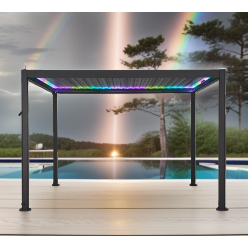 Pergola bioclimatica elettrica Strisce LED in alluminio 12m2.