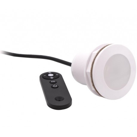 Potente luce per piscina a LED RGBW, con telecomando per 6 programmi di luce e una scelta di 4 colori, rosso, blu, verde e bianco.