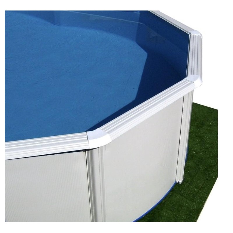 Piscina ovale alta 132 cm senza contrafforti. La piscina si inserisce perfettamente nel tuo giardino. Struttura in acciaio con profili metallici e schiumatoio completo.