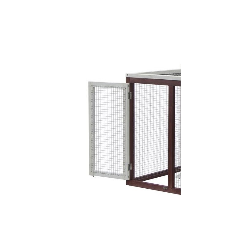 Una porta a rete di 25 x 40 cm adiacente alla voliera permette alle galline di uscire e godersi il cortile o il giardino.