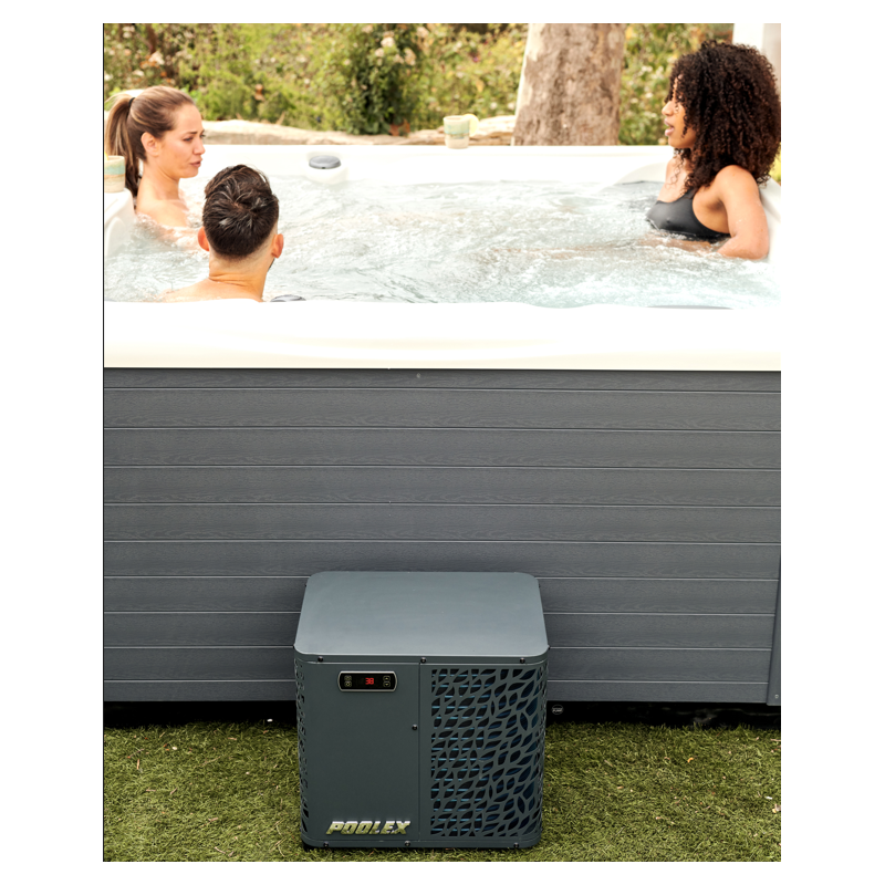 La Poolex O'Spa è una pompa di calore per vasche idromassaggio che consente di risparmiare fino al 75% di energia sul riscaldamento della vasca idromassaggio rispetto a un riscaldatore elettrico convenzionale per un ritorno di potenza equivalente.