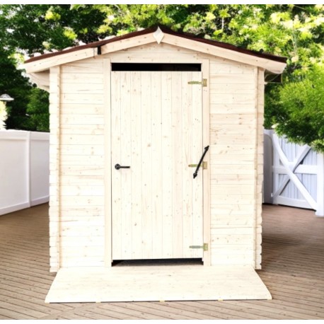 Capanno per WC a secco in legno Alpina 2,21x3,04 Habrita 4,64m2 con tetto a doppia falda.
