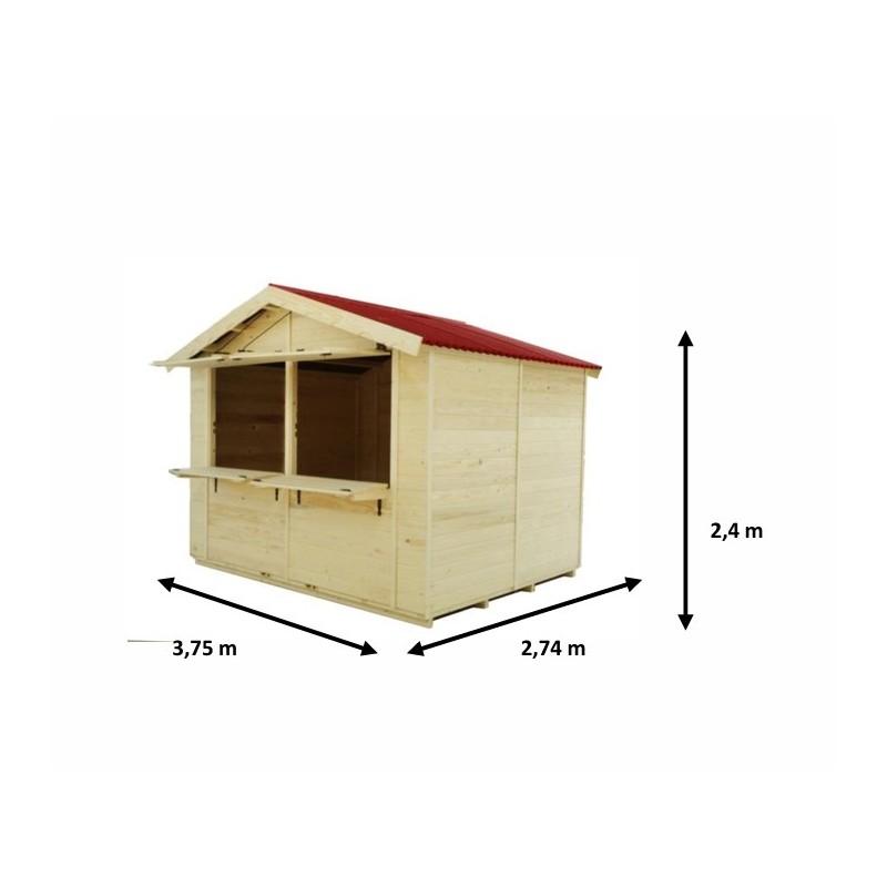 Il negozio mercantile Sylva è appositamente progettato per fiere, Mercatini di Natale o presentazioni commerciali, questo piccolo chalet di 8,6 m2 è dotato di due grandi persiane che permettono di chiudere il rifugio.