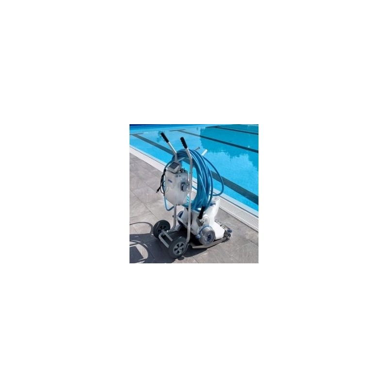 Consegnato con il suo carrello in acciaio inox verniciato, il robot elettrico E-Peps 300 entra in acqua in modo indipendente.