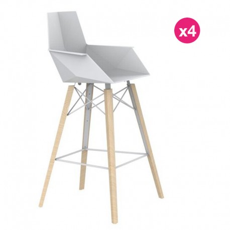 Set di 4 sgabelli da bar bianchi Vondom Faz Wood1 con piedi e braccioli in rovere sbiancato.