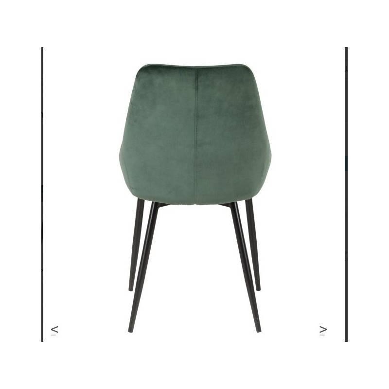 Optiamo per questa sedia in velluto verde KosyForm, la sua base in velluto e metallo nero offre modernità ai nostri interni.