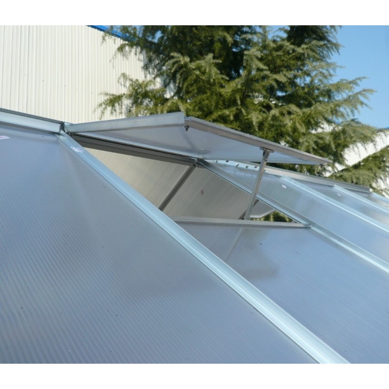 La serra esterna è dotata di una porta scorrevole di 60 x 160 cm (l,a) e di 2 finestre da tetto ad apertura manuale.
