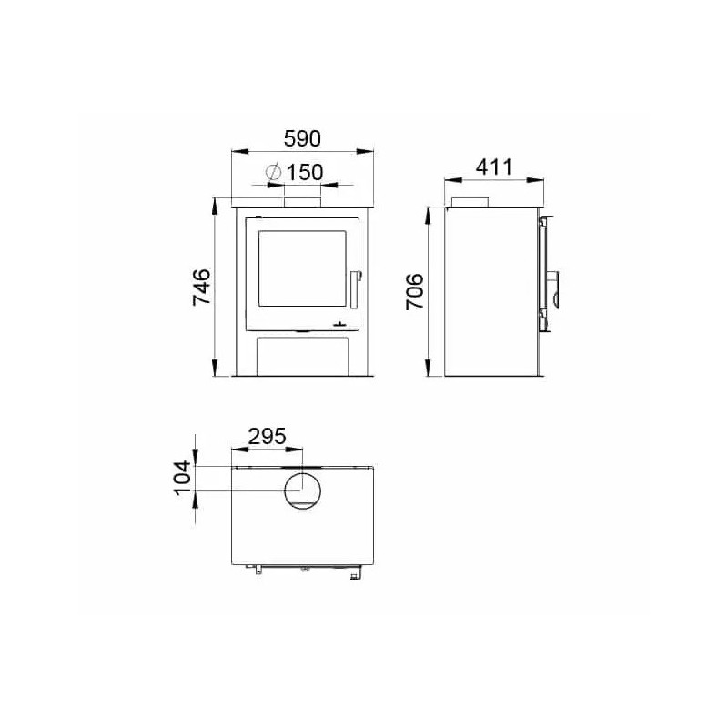 Volume riscaldato: 275m3- Efficienza 80% - Porta posacenere in ghisa e griglia - Camino in ghisa - Doppia combustione e sistema di vetro pulito - 3 lati Vetroceramica smaltata resistente a 750°C.