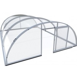 – Painéis de policarbonato translúcido inquebráveis de 6 mm, com filtro UV de dupla face,