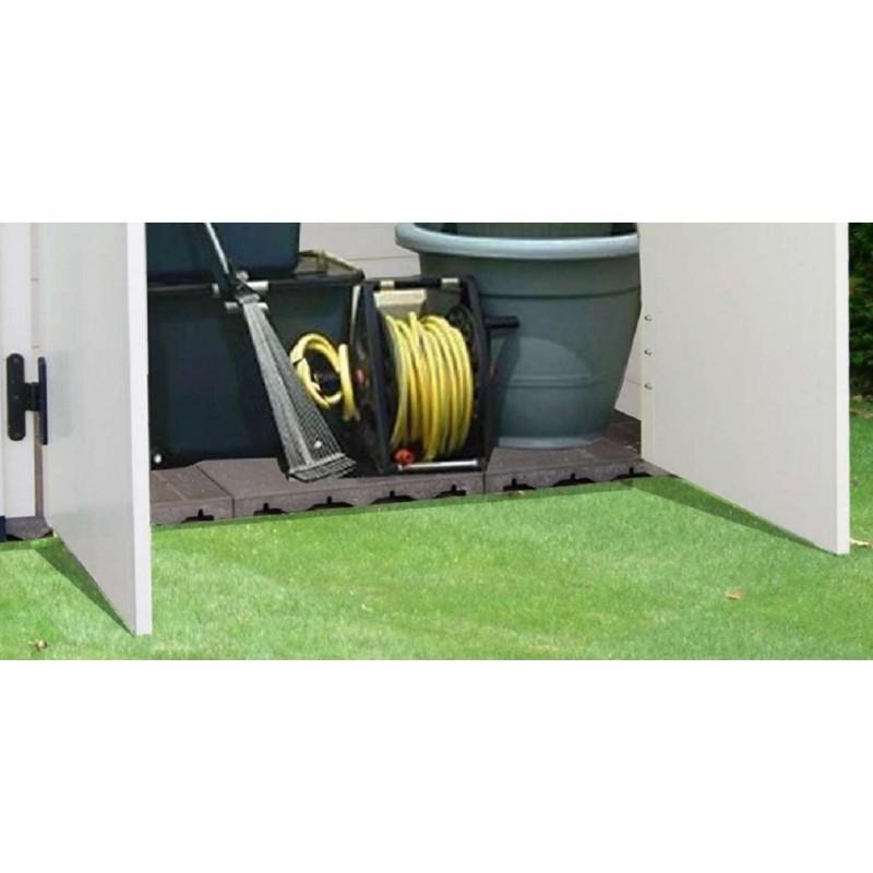 Para ser instalado em uma laje de concreto necessariamente. Não monte seu galpão de jardim diretamente no gramado ou no solo.