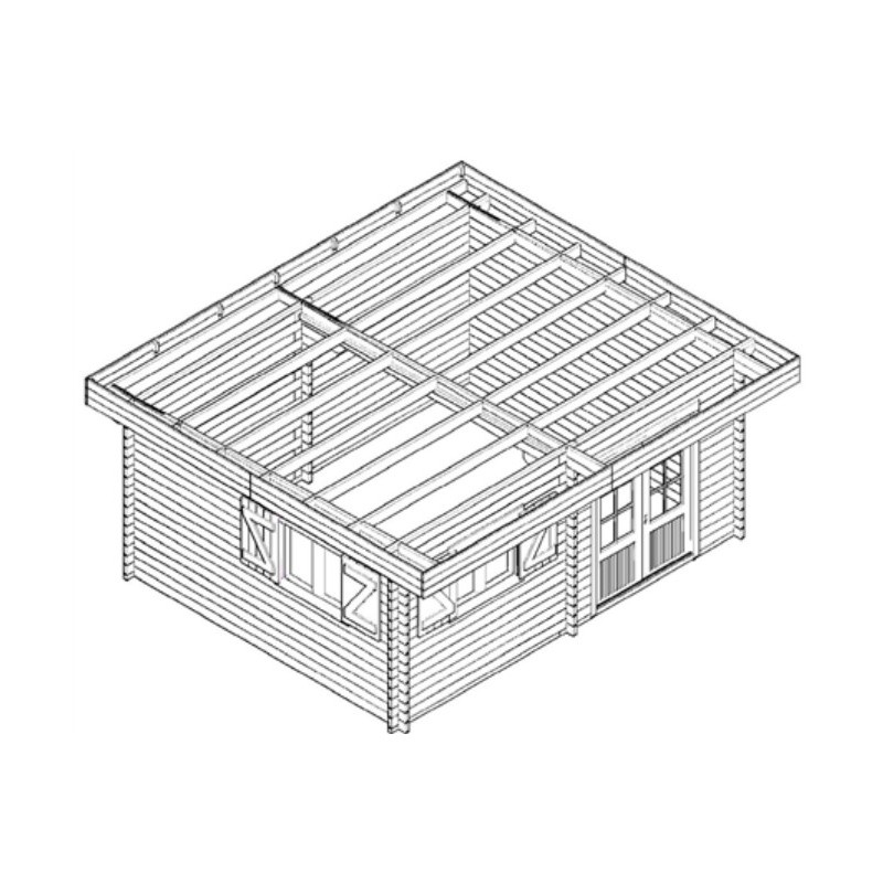 Abrigar telhado plano em madeira maciça 25,37m² pranchas 28mm com terraço + bandeja de aço de teto - HABRITA.