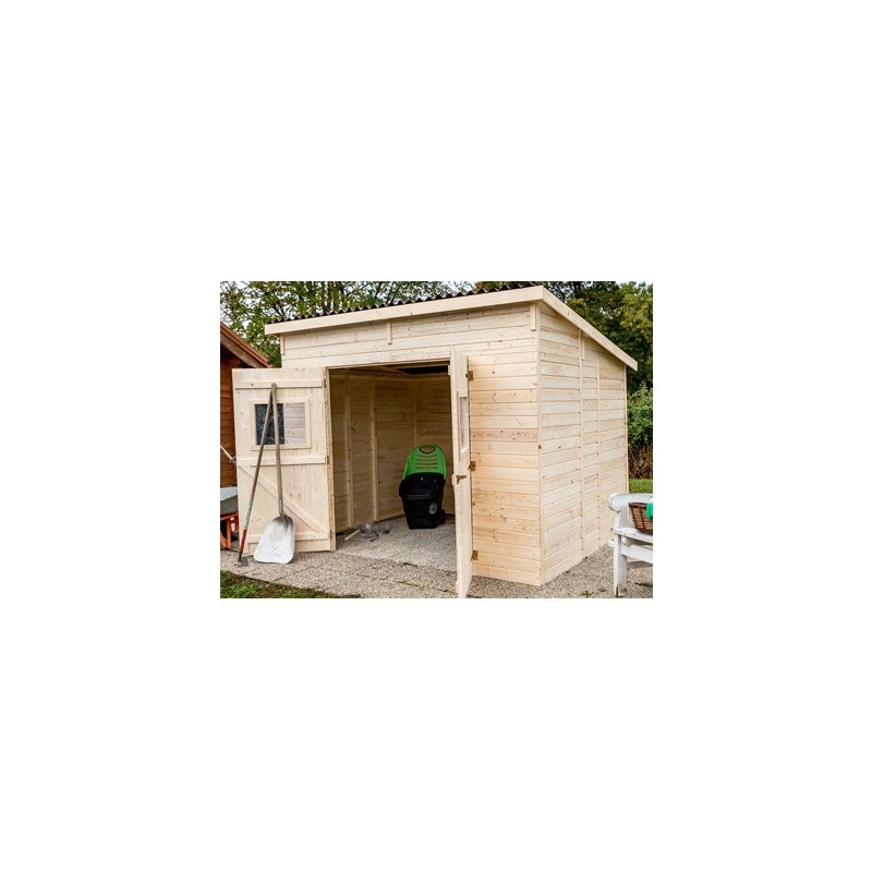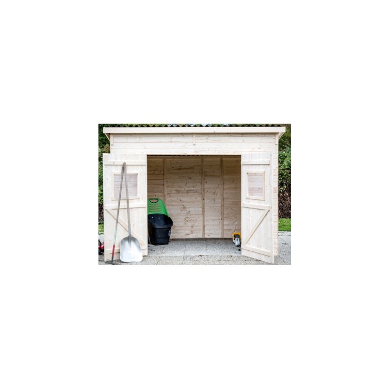 Este abrigo de madeira de 6,6 m2 de superfície útil em pinheiro natural permitirá que você armazene um grande número de objetos ou desfrute de uma grande sala de estar adicional. Ele é entregue como um kit para sua casa acompanhado de um manual de montagem detalhado.