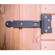 Sua estrutura de toras ásperas é equipada com uma porta com fechadura.