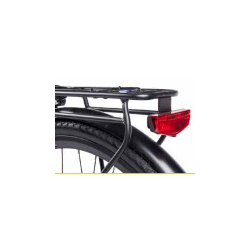 Possui um equipamento completo para condução a lazer: guarda-lama, iluminação, bagageiro ou suporte prático.