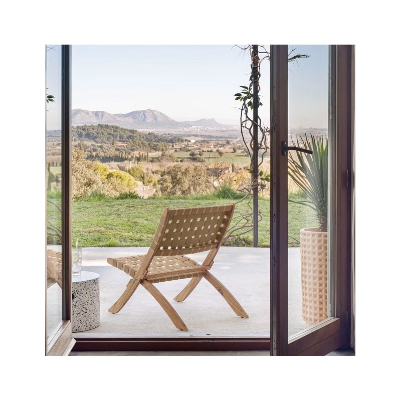 Para desfrutar de uma bebida ao sol enquanto lê na praia ou no seu terraço. O design da poltrona Beli é a tendência e convida você a relaxar ao ar livre, graças à combinação de madeira e à cor creme de seu assento tecido à mão.