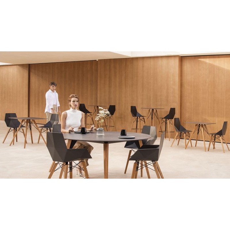 Confortável e ultra moderno, o banquinho faz wood projetado por Ramon Esteve para a prestigiada marca Vondom, combina a modernidade do design "origami" e a sobriedade quente dos pés de carvalho. Assim dotado de uma personalidade forte, o banco do bar Faz Wood traz um toque único e de alta tecnologia à sua decoração de interiores.