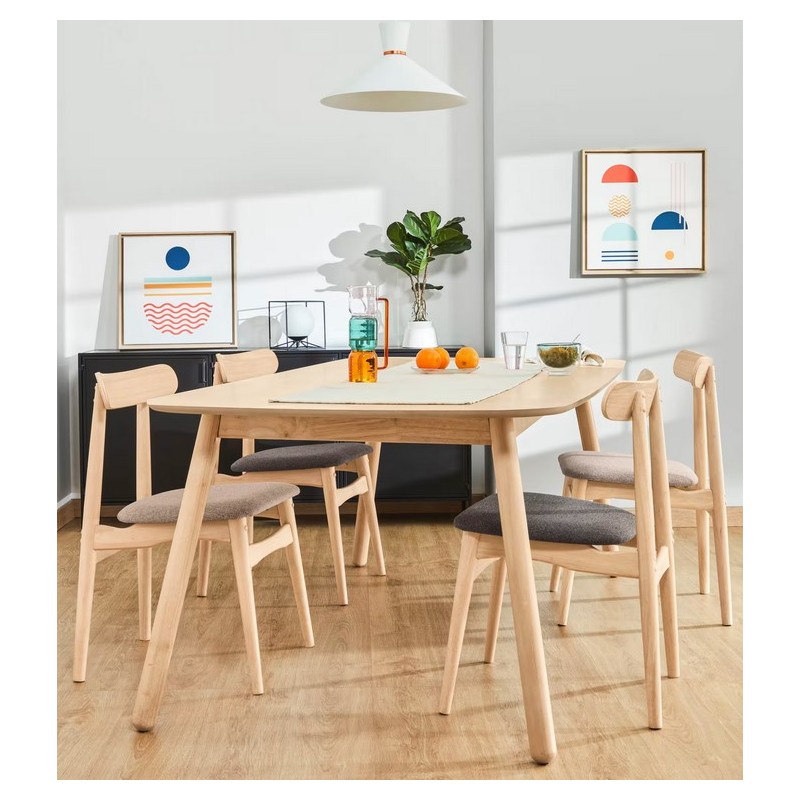 É ideal para espaços de jantar graças às suas cores claras e design limpo.