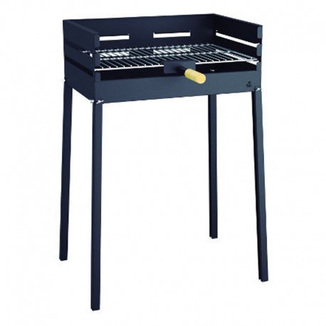 Este churrasco tem uma grade cromada ajustável de 2 níveis, e tem uma alça de madeira sólida.