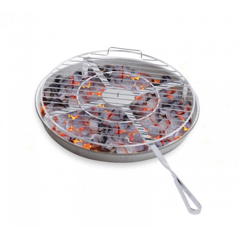 1- A bandeja de brasa de tamanho compatível com o da grade também serve de suporte.