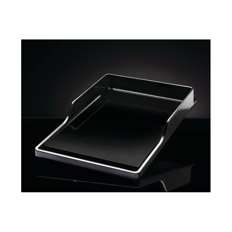 - Ligeiramente inclinado para drenar os sucos, com borda para evitar respingos