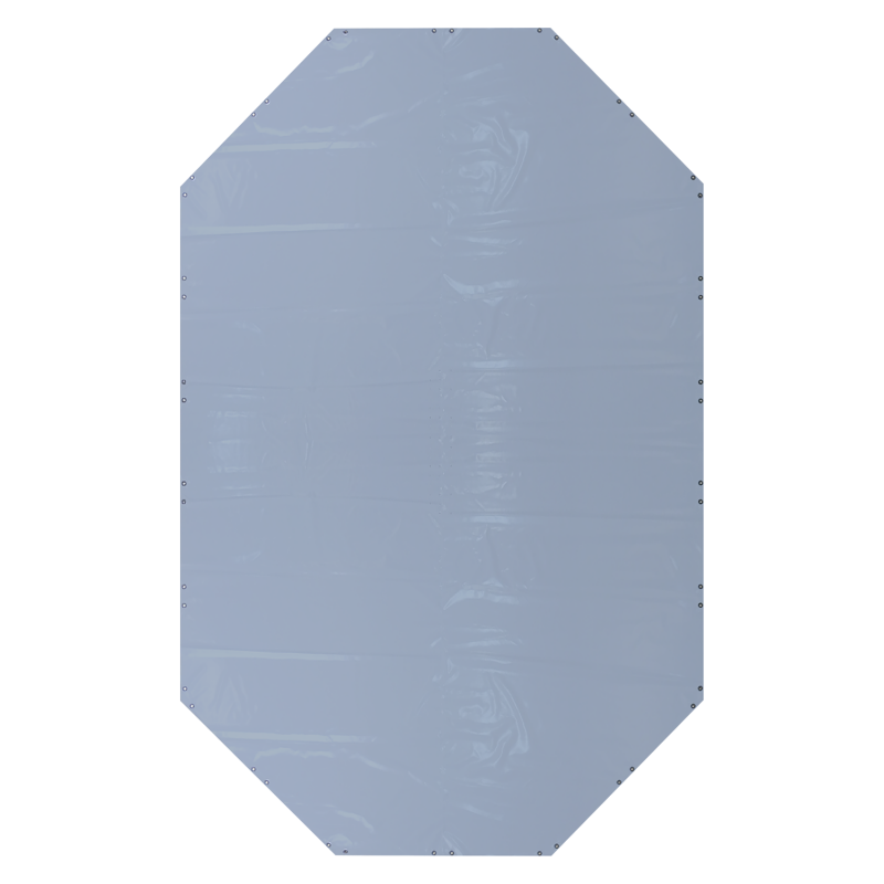 A capa de inverno BWTmyPOOL é feita de um tecido de PVC opaco revestido com 580 gramas/m2, cinza por fora e areia em sua superfície interna.