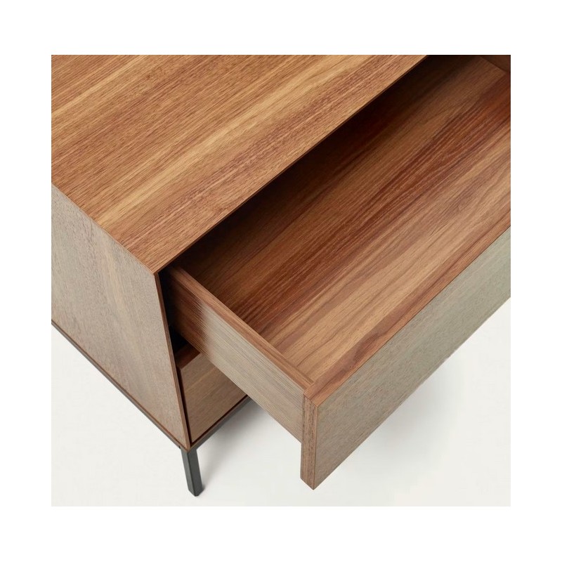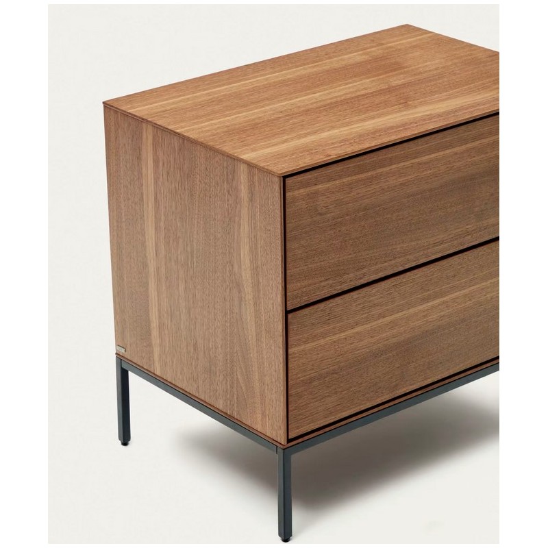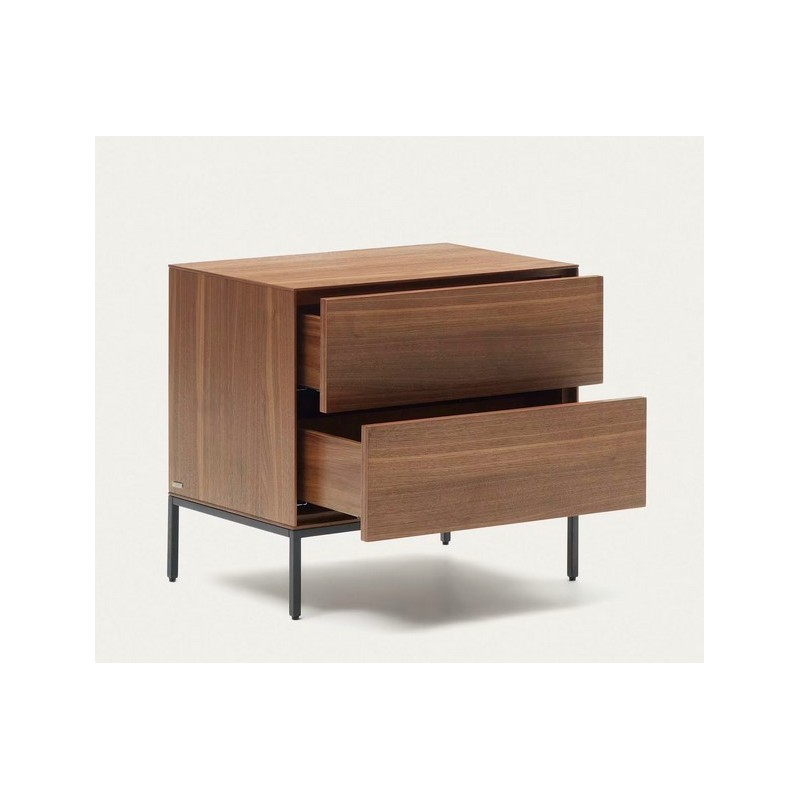 Mesa de cabeceira Rana com chapa de madeira de nogueira com acabamento moderno e 2 gavetas.